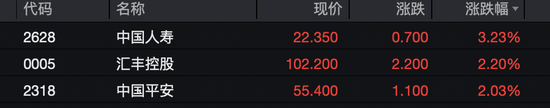 保险板块,中国人寿、中国平安分别上涨3.23%、2.03%。