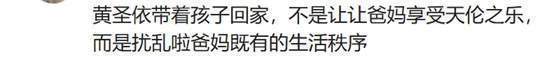 黄妈妈与女儿的对话中,感觉她的性格挺强势的,直言不讳,还很排斥女儿与外孙。意思是,两个老人家的生活不想被女儿母子三人打扰。黄圣依的父母,这种自洽又独立,内心里不太需要家庭的羁绊,更不想与孩子深度联结,确实是罕见的。