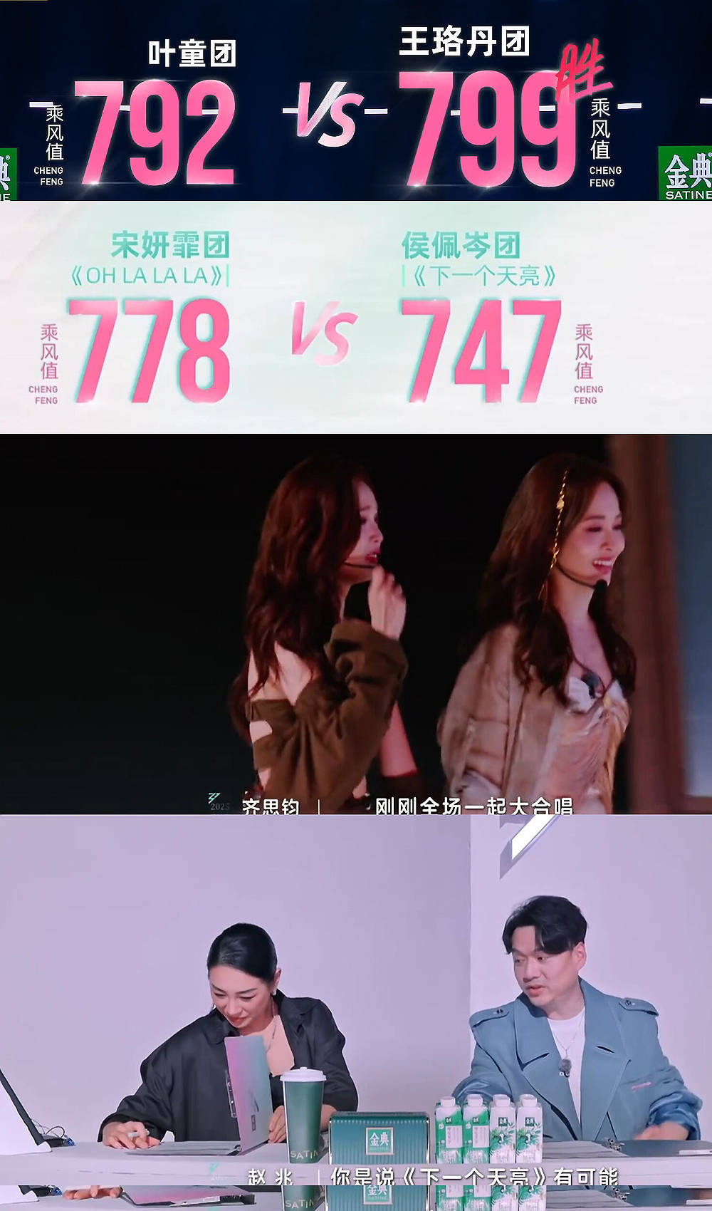 叶童组能赢,叶童绝对是居功至伟,有人气、有帅气、还努力,而且如果说侯佩岑组是主打不同年龄组女性的碰撞,那么叶童组则是包容性,组员是来自各个领域,大小不一各有特色,但在一起又分外和谐,所以这次赢也说得过去,但问题是侯佩岑的“天亮组”可以输,但凭什么垫底?还是断层倒一,只获得747与宋妍霏组差了30票,与最高的799差了52票,表演时的全场大合唱是唱假的吗?这氛围连淡淡都觉得可能会赢,结果是分数垫底倒数第一吗?