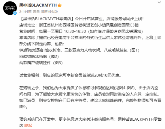 黑神话的首家线下店铺“黑神话BLACKMYTH零售店”于今日开启试营业牛金宝配资牛金宝配资,地址在浙江省杭州市西湖区转塘街道艺创小镇凤凰创意国际C3幢,营业时间为每周一至周日10:30-18:30。