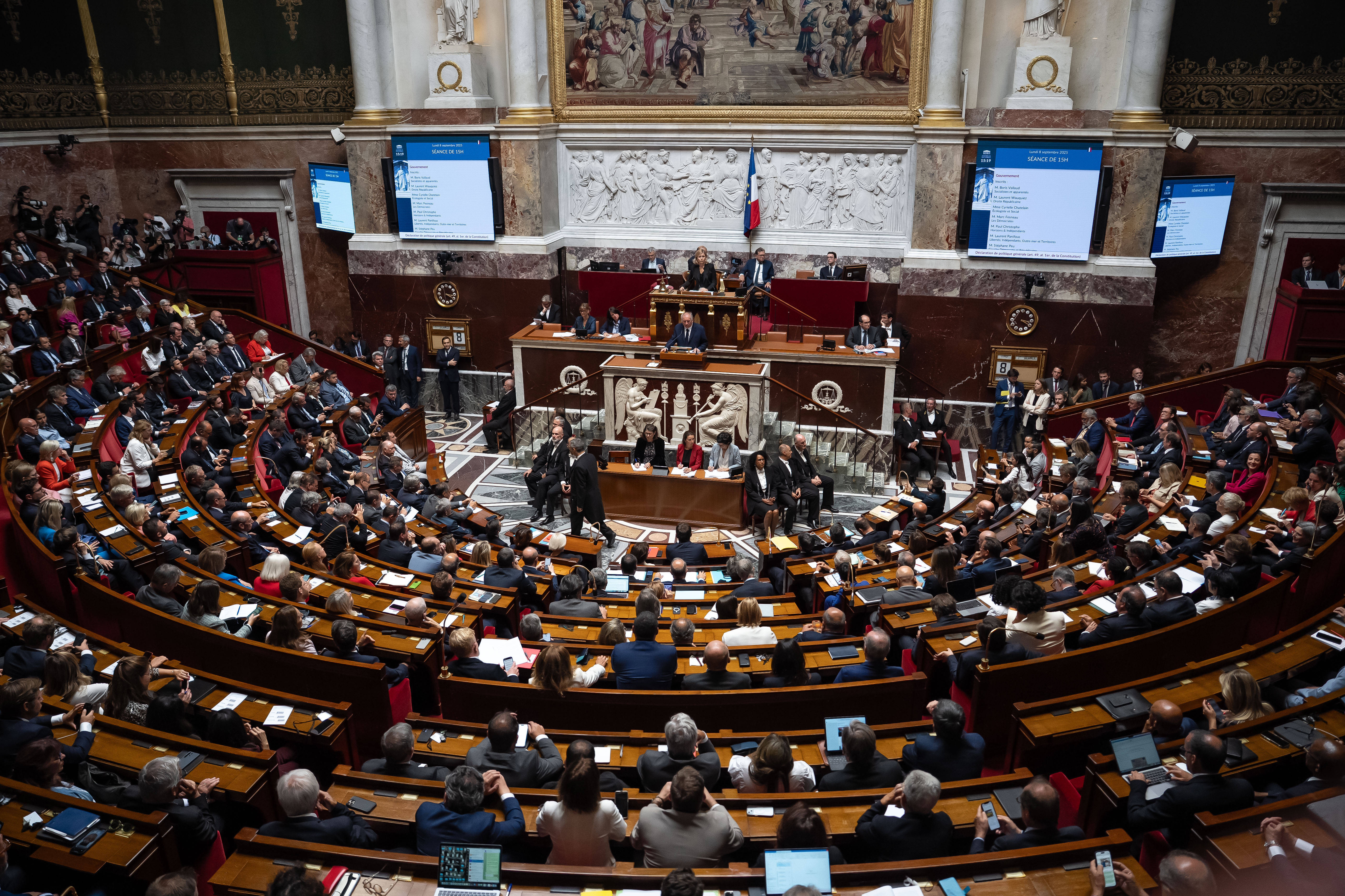 9月8日,法国总理贝鲁在位于巴黎的国民议会内发表演讲。新华社发(奥雷利安·莫里萨尔摄)贝鲁未通过议会信任投票