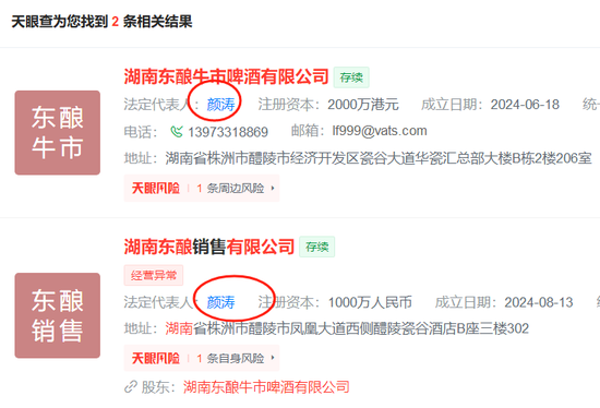 另外,据“南都湾财社”报道,吴向东日前在社交媒体宣布,将推出一款“超级啤酒”名叫“牛市”,目前尚未有产品相关资料流出。“南都湾财社”报道指出,珍酒李渡全资控股的“中国酒业控股有限公司”去年在醴陵新注册了一家名为“湖南东酿牛市啤酒有限公司”的企业。天眼查显示,该企业法人代表与珍酒李渡执行董事之一“颜涛”同名。